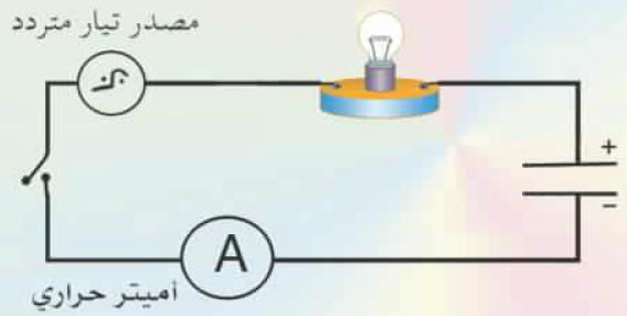 اشرح مع الرسم تجربة عملية توضح من خلالها أن المكثف يسمح بمرور